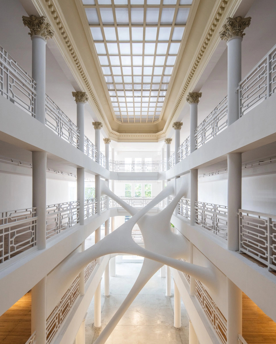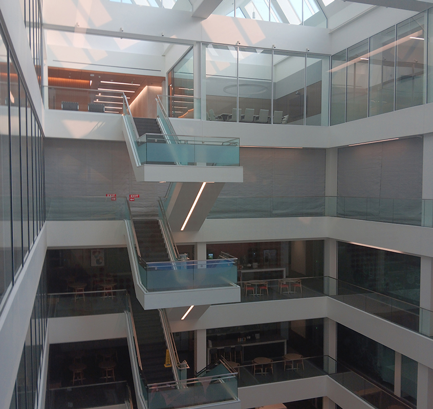 A multi-level atrium with a monumental stairway serving every floor, make up air is reduced by an astounding 80%.